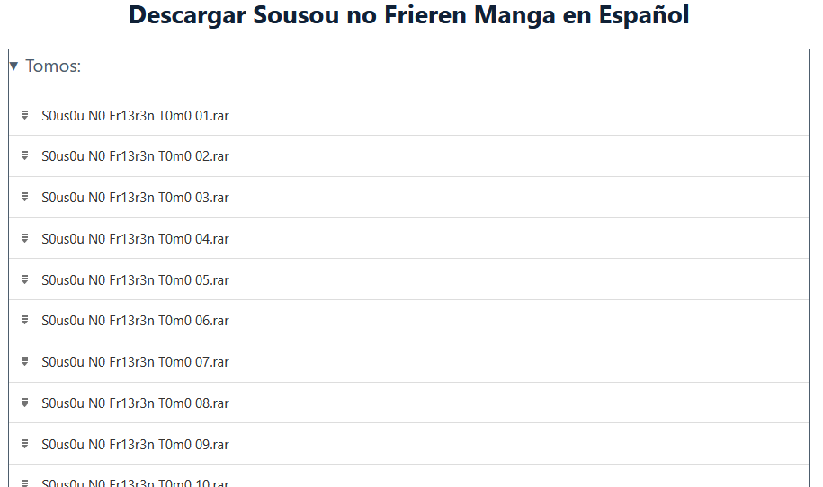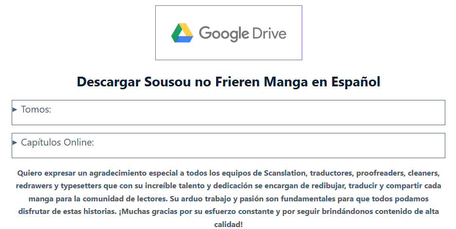Ahora selecciona el manga que deseas y desplázate hasta el final, donde encontrarás los contenedores de «Tomos y Capítulos Online«.